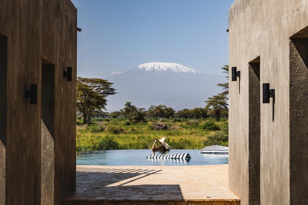 Angama Amboseli is located within the 5,700-acre Kimana Sanctuary, a private conservancy that borders Amboseli National Park. This setting allows for a more flexible safari experience, including guided walks and night drives, while still offering excellent access to Amboseli’s wildlife and iconic Kilimanjaro views.