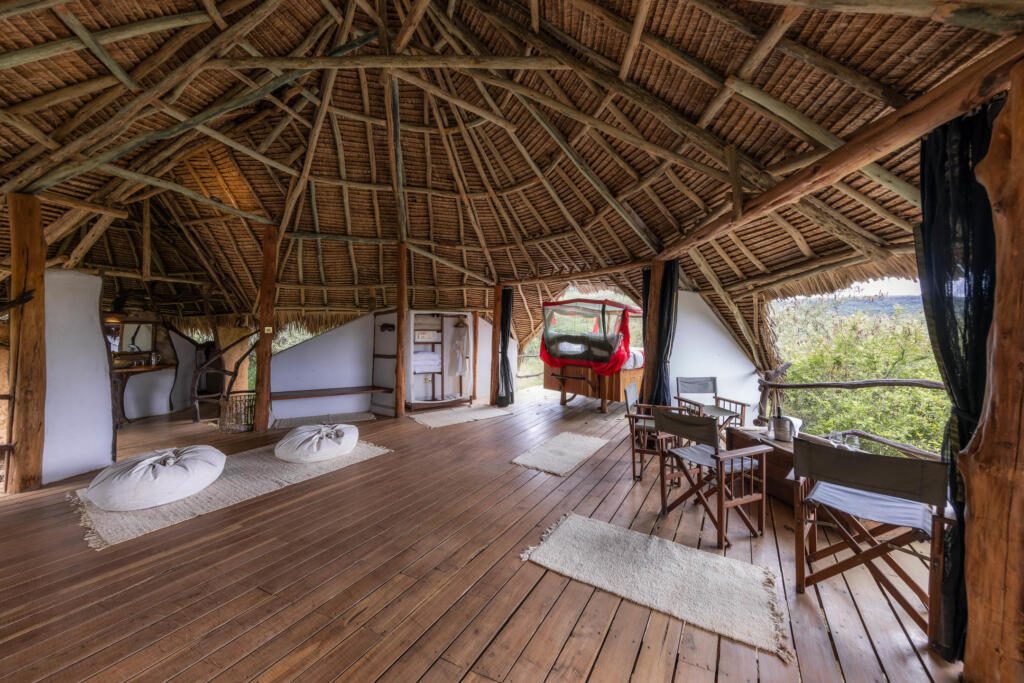 Each Star Bed suite is positioned on a rocky outcrop overlooking the undulating plains and a nearby watering hole. The suites are partially thatched and feature a large raised wooden platform with a handcrafted four poster bed. Each evening, weather permitting, the beds are rolled out into the open air, offering uninterrupted views of the stars and the soft colors of sunrise the following morning.
