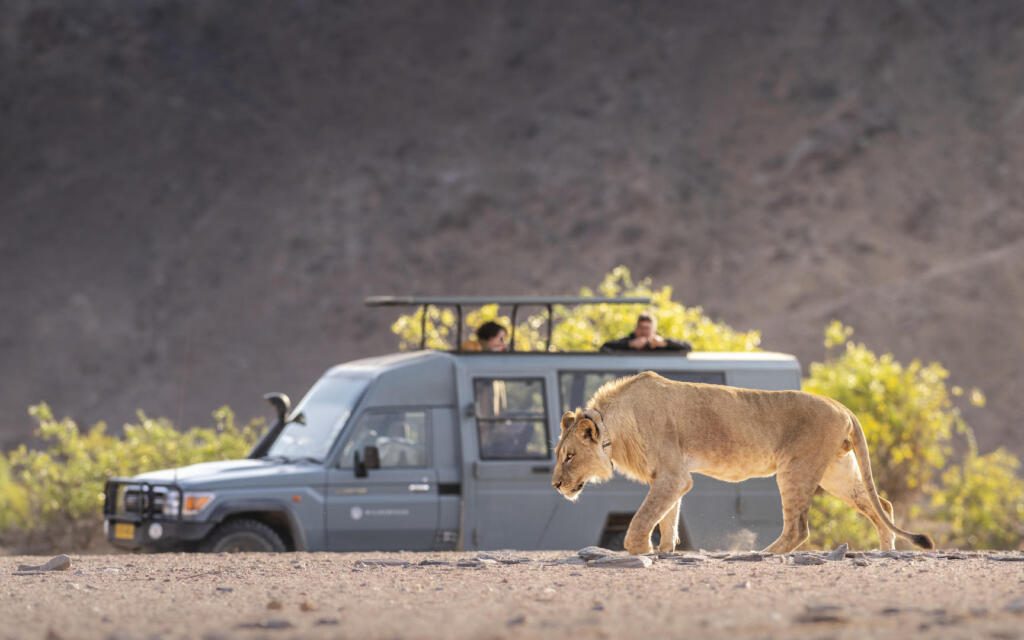 “Otherworldly” is perhaps the best way to describe the Hoanib River Valley. Here, towering dunes merge with rugged mountains and dry riverbeds trace the movement of Namibia’s remarkable desert-adapted wildlife.